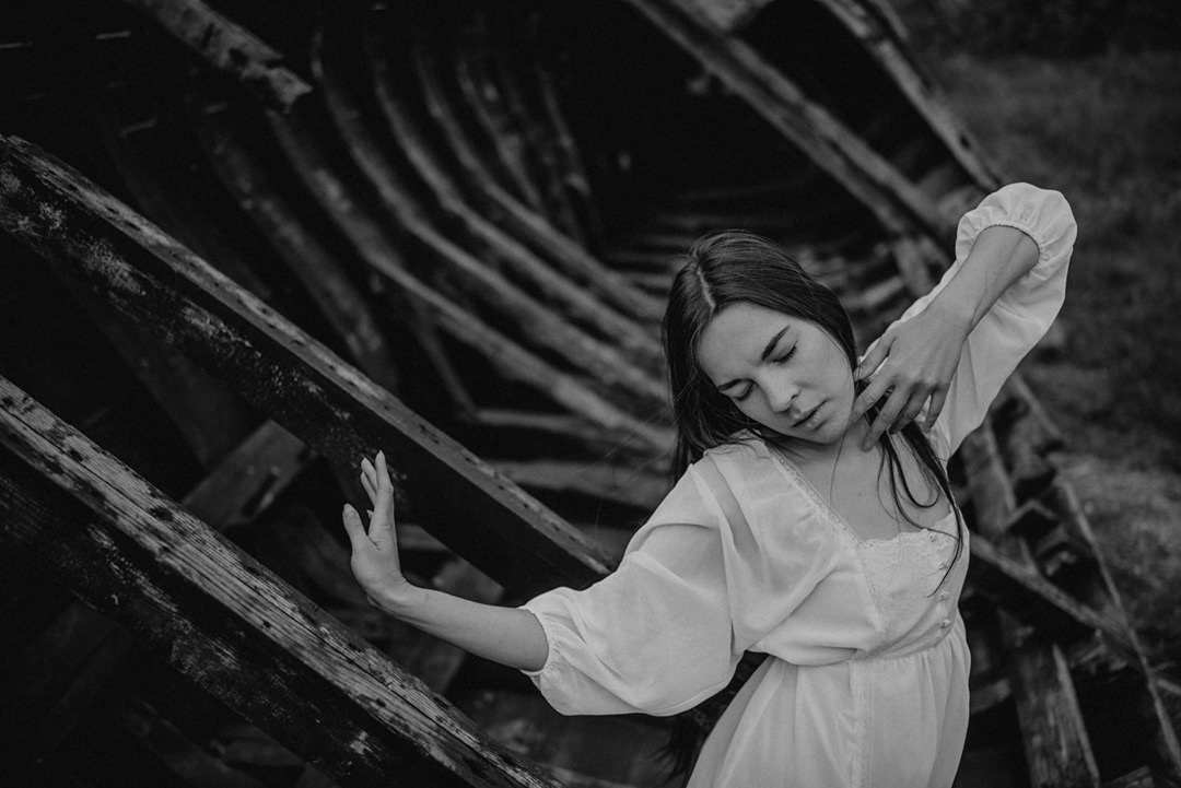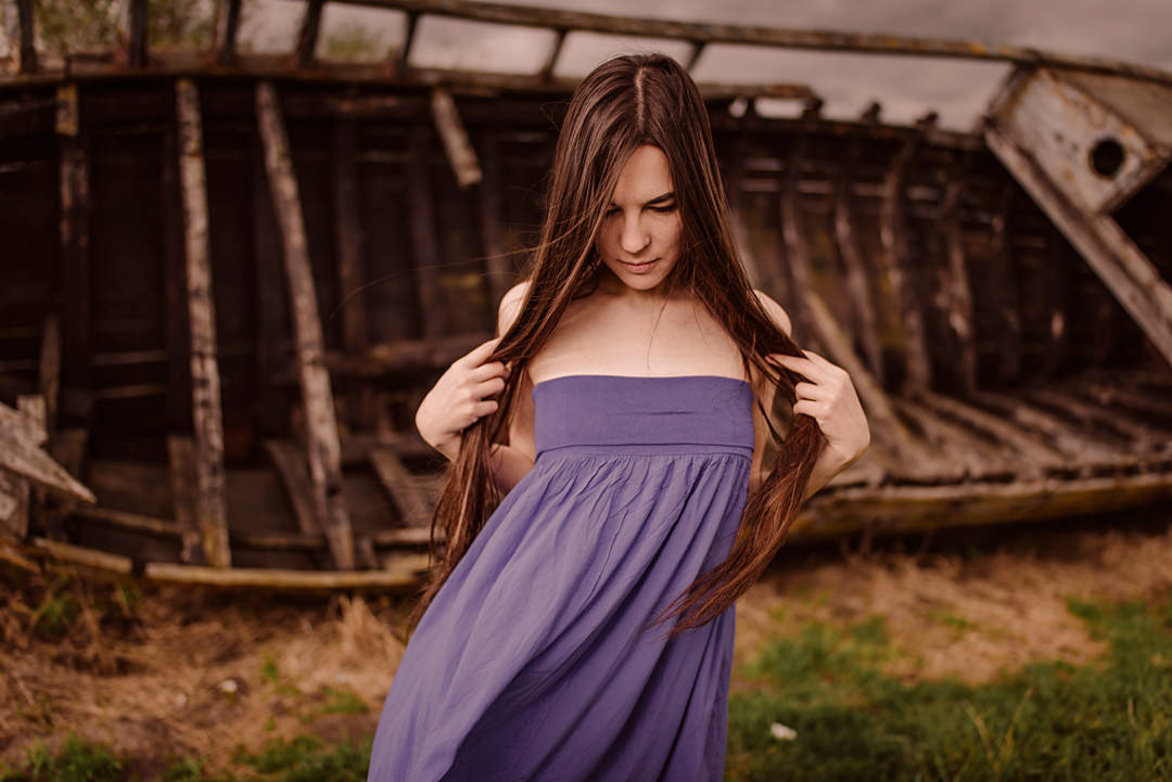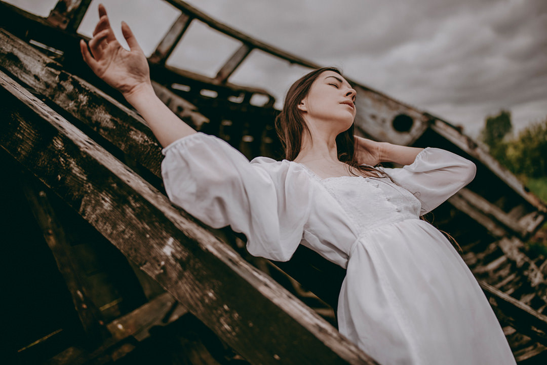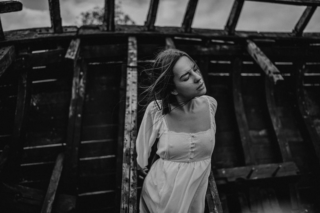 sesja zdjęciowa przy starej łodzi