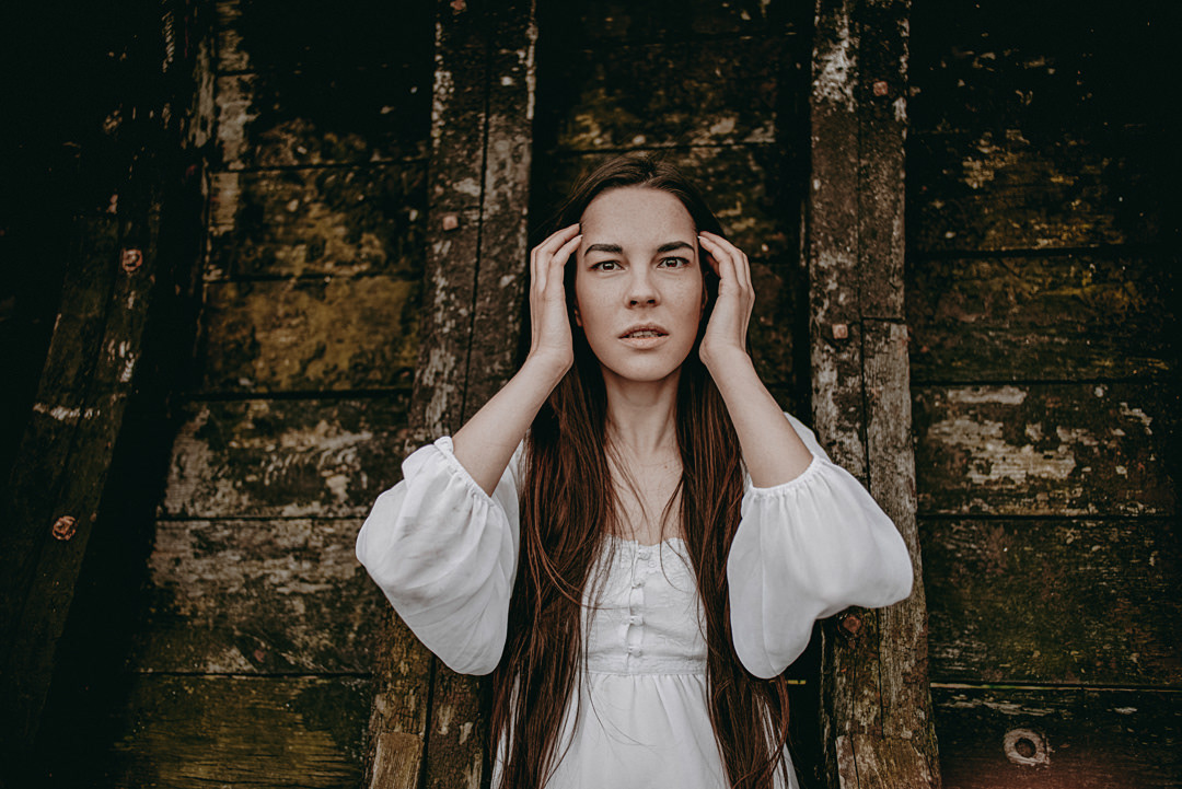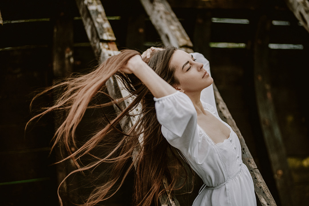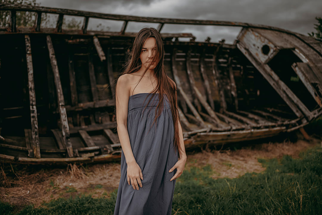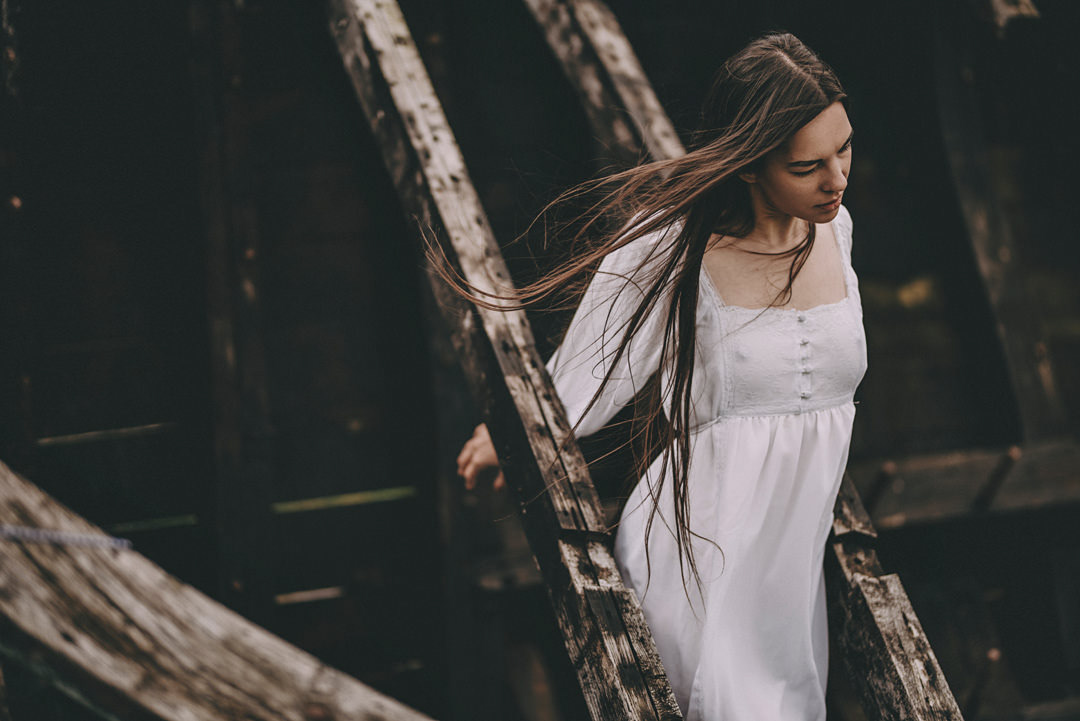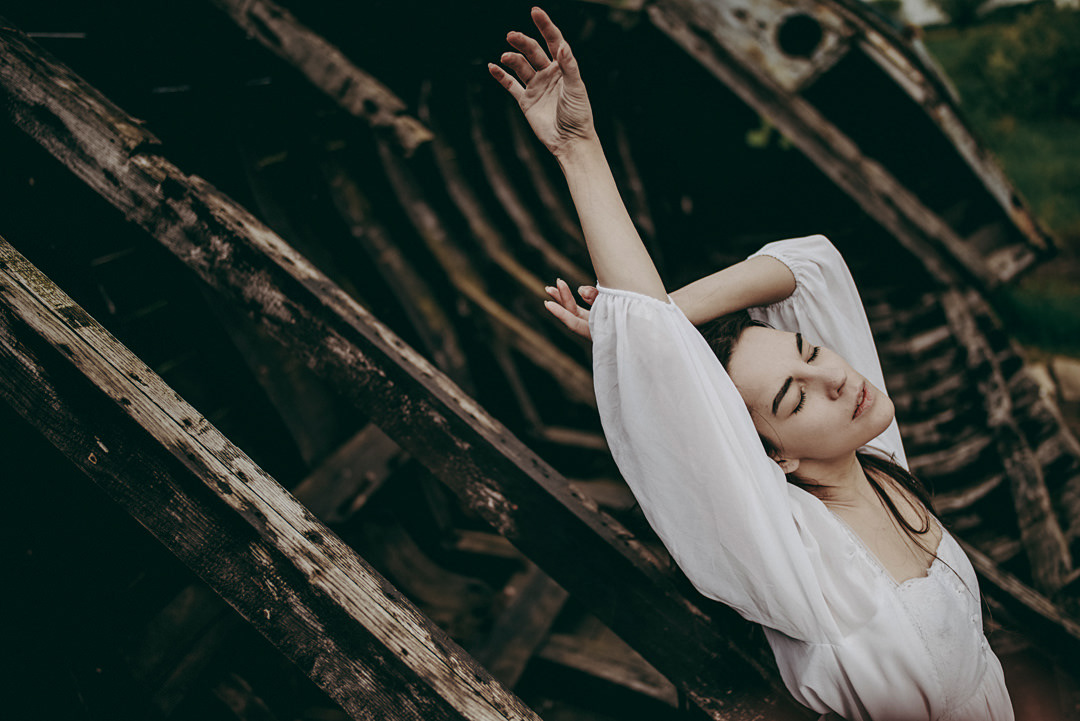 sesja zdjęciowa przy starej łodzi